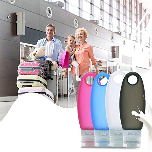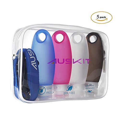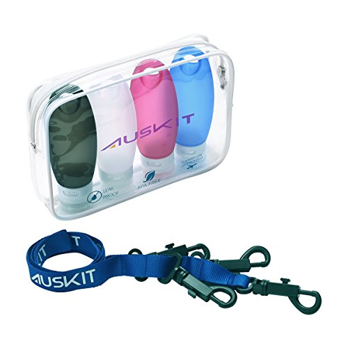 -. Binding : Health and Beauty -. Brand : AusKit -. Color : Pink+Blue+White+Grey -. Department : Beauty Bags & Cases -. EAN : 0604753767120 -. Feature : 1.Leak Proof Refillable Airline Travel Bottles: Each Travel Lotion Bottle 100% BPA Free Food Grade silicone bottle set has been created not to leak. / 2.EVA Clear Travel Bag: The high quality Toiletries Bag will allow you to pack all of your toiletries safely. / 3.ID Window Easily Identify Contents: Each travel size toiletries bottle is a different color and has a rotatable cosmetics collar so you can change the text that shows. / 4.Portable Lanyard:Hanging shower caddy, hangs from showerhead or control.Great for travel, camping, cruises, the fitness center, or the dorm. / 5.Large Size Bottle: The travel kit bottles set are 3.3 oz making them the largest carry on bottles allowed.Soft silicone body allows you to easily squeeze out that last drop of shampoo. -. IsAdultProduct : 0 -. Label : Kean -. Manufacturer : Kean -. PackageQuantity : 5 -. ProductGroup : Beauty -. ProductTypeName : BEAUTY -. Publisher : Kean -. Size : 3.3 OZ -. Studio : Kean -. Title : AusKit Travel Bottles, Portable Soft Travel Bottle Set of 3.3oz Travel Accessories Bottles and Lanyard, TSA Approved Refillable Silicone Travel Bottles For Liquid Toiletries with Toiletry Case -. UPC : 604753767120