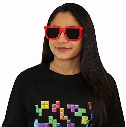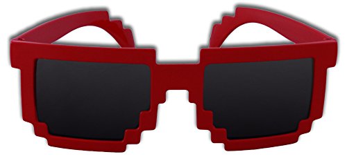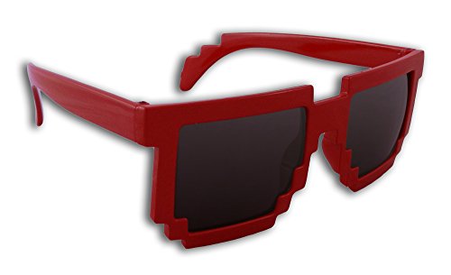 8-Bit Pixel Retro Computer Sun Glasses Nerd Sunglasses 8 Bit (Red)