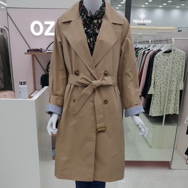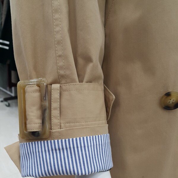 살짝 빳빳한 소재감의기본형의 트렌치 코트예요소매밸트 탈부착 가능하고요소매 배색이 되어 있어포인트를 줄수도 있어요.