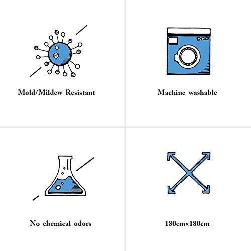ENJOY YOUR SHOWER: this shower curtain fits standard size tub/shower areas with 12 plastic shower curtain rings.