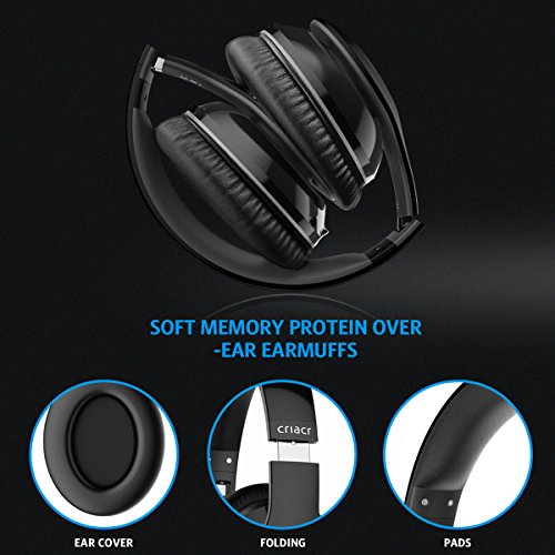 Criacr Wireless Bluetooth Headphone lets you enjoy crystal stereo and powerful bass. The high-performance Bluetooth chip keeps a stable transmission signal at full speed without interruption. And the built-in microphone offers a clear voice call. It is powered by high-capacity battery that enhances long-endurance ability. Soft over-ear cushions feature advanced venting and signature ergonomic pivoting for a custom, flexible fit that keeps the music in and the noise out.