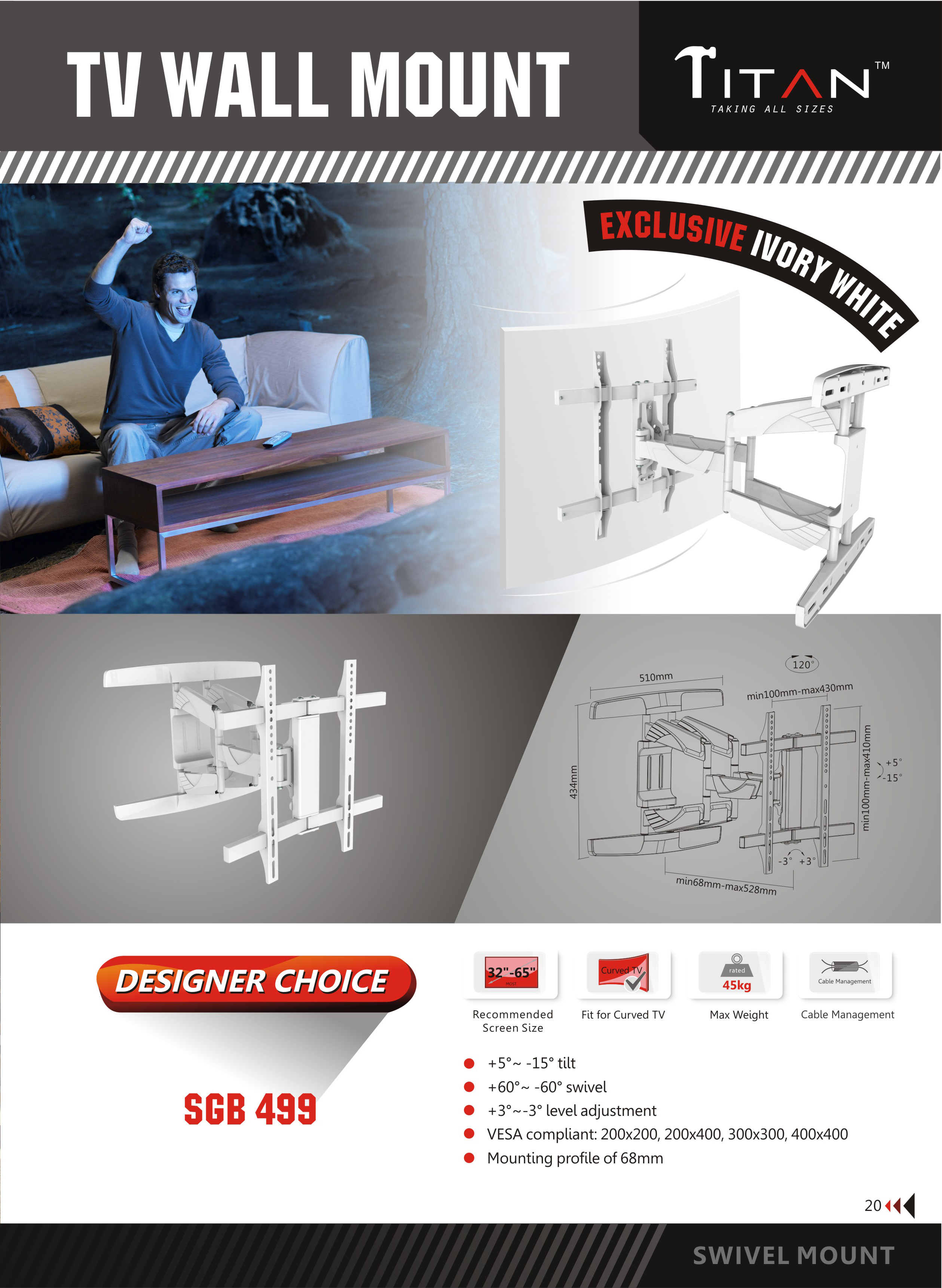 ·u0026nbsp;u0026nbsp;u0026nbsp;u0026nbsp;u0026nbsp;u0026nbsp;u0026nbsp;u0026nbsp; Model – SGB 499 DOUBLE ARM SWIVELu0026nbsp;BRACKET