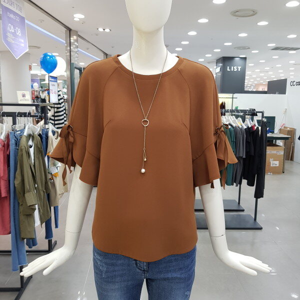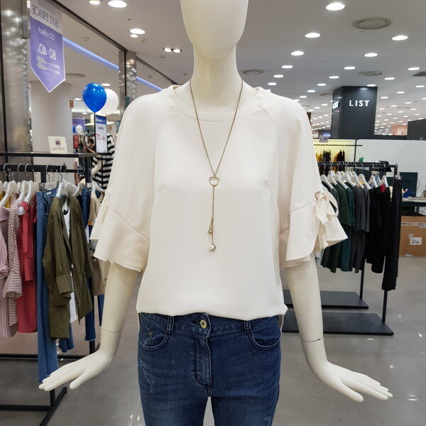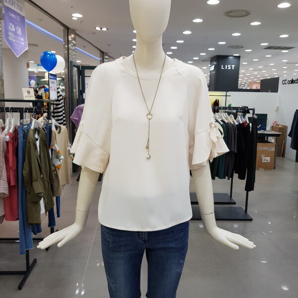 소매러플 디자인이 여성스럽고 목걸이 셋트로 멋스러움