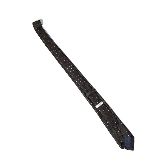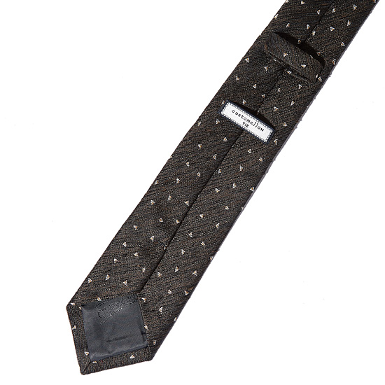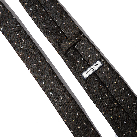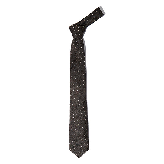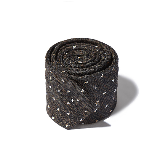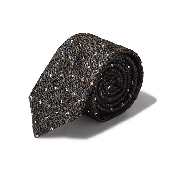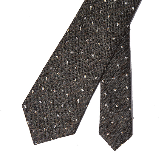 - 카키 컬러의 스티치 바탕에 마이크로 자수 패턴이 올 오버 된 넥타이.