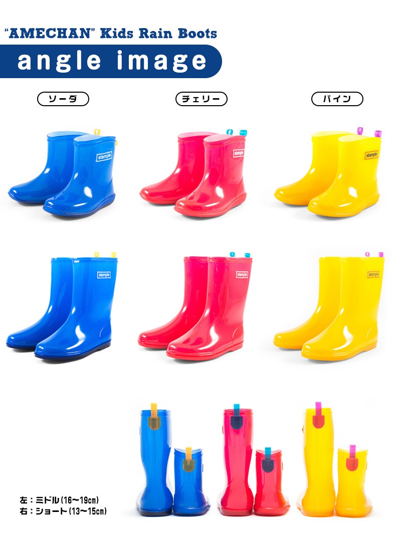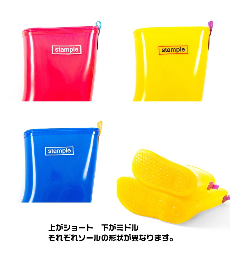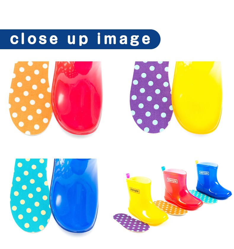 【7,560円以上送料無料/あすつくOK】◆スタンプル 不思議な色のAMECHANレインシューズ(長靴)◆メイドインJAPAN・日本製なので品質も安心☆かわいい水玉インソール(中敷き)が付属!靴底も滑り止め加工が施されています。※撮影は室内で行われており、ライティングにより実物と色味が少し異なる場合がございます。※採寸はスタッフが手作業で行っており、少々の誤差が生じる場合がございます。■サイズ…ショート(13-15cm) ミドル(16-19cm)■素材…レインブーツ:PVC インソール表地:綿100%■ブランド…stample■生産国…日本■商品コード…AR-71190
