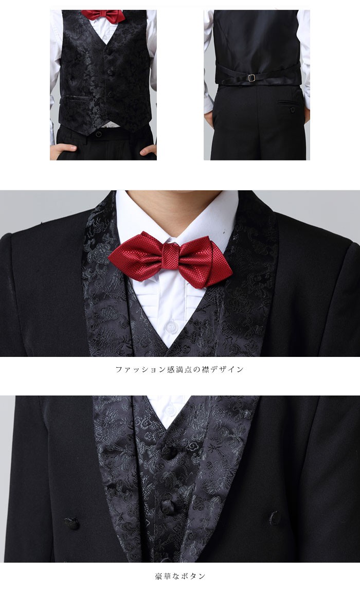 | 素材 | :ポリエステル 綿5点セットジャケット+シャツ+ベルト+蝶タイ+ズポン |