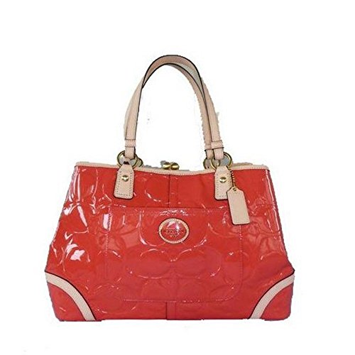 -. Title : Coach 23722 Peyton Papaya Orange Patent Leather Embossed Framed Carryall