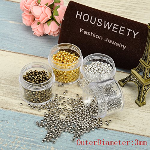 HOUSWEETY 3000PCS 4 Colors Mixed Tube Crimp End Beads 3mm Bracelet Loose Beads Spacer Jewelry Making End Caps