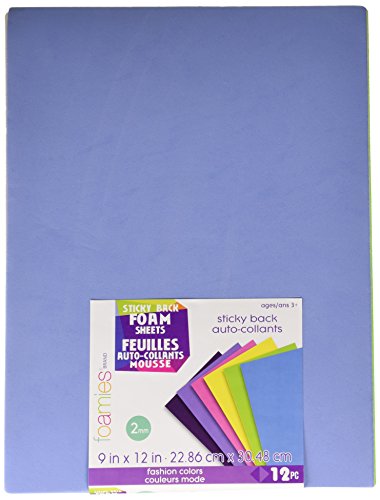 Sticky Back Foam Sheets 9-Inch by 12-Inch, 12/Pkg, Fashion Colors