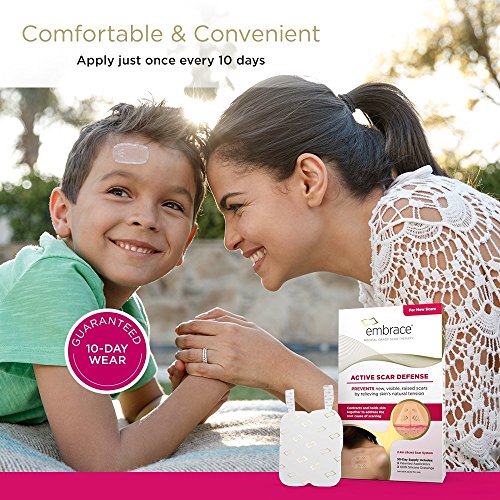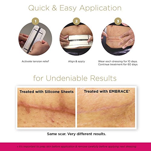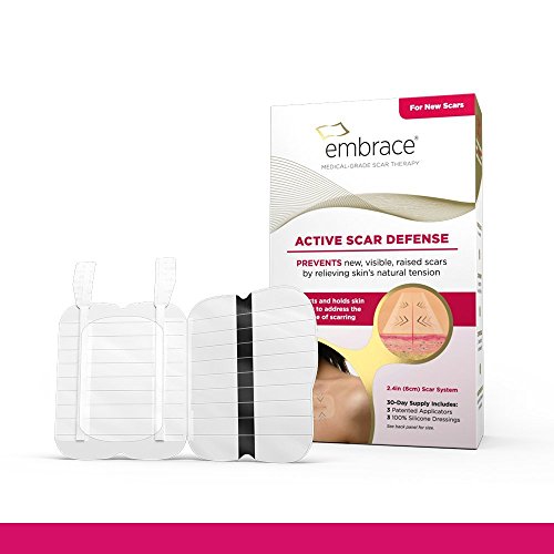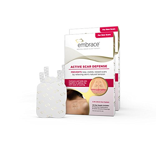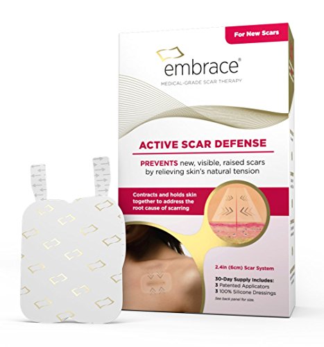 In clinical trials 92 percent of Embrace patients and physicians rated Embrace treated scars as better vs. leaving untreated when treated for 60 days with the Embrace treatment (see our 60-day 2-pack listing for discounts on full treatment). Embrace Active Scar Defense gently holds a closed, dry incision together, relieving tension to address the root cause of scarring. Our one-of-a-kind scar treatment system features patented Stress-Shield technology which protects and stabilizes the scar site from the stress of daily movements and reduces scar appearance. We use the restorative properties of 100 percent medical grade silicone to soften, flatten, and fade scar tissue by providing the hydration the scar needs. The result is a visibly thinner, lighter and smoother scar.