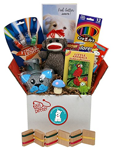 -. Binding : Toy -. Brand : Beyond Bookmarks -. EAN : 0715134268881 -. Feature : Help a Special Child Recover Quicker from Illness or Injury / Great Stuck in Bed or Quiet Time Games and Activities, Plus the Sock Monkey - Their New Best Comfort Buddy / Ships within 1 Business Day / Free Personalized Gift Message on Keepsake Bookmark / Creative, Unique Care Packages & Gifts since 2003 -. IsAdultProduct : 0 -. Label : Beyond Bookmarks -. Manufacturer : Beyond Bookmarks -. PackageQuantity : 1 -. ProductGroup : Toy -. ProductTypeName : TOYS_AND_GAMES -. Publisher : Beyond Bookmarks -. Studio : Beyond Bookmarks -. Title : All Better - The Kid's Get Well Pack -. UPC : 715134268881