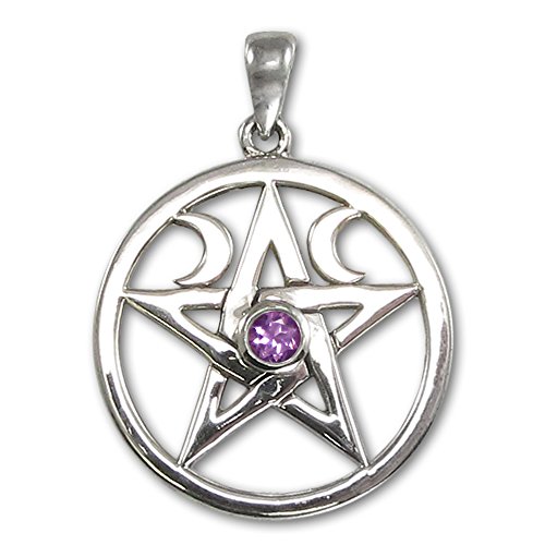 -. Title : Sterling Silver Wiccan Pentagram Pentacle Pendant with Natural Amethyst