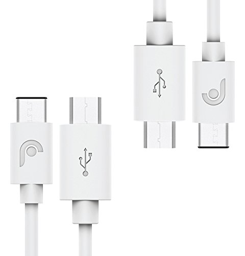 USB Type C to Micro USB Cable 1 FT - 2 Pack, Fosmon USB-C to Micro-B Sync Charge Data Cable for Nintendo Switch, Galaxy S8 / S8 Plus, LG G6 V20, Google Pixel, Nexus 6P, Moto Z Force, MacBook (White)