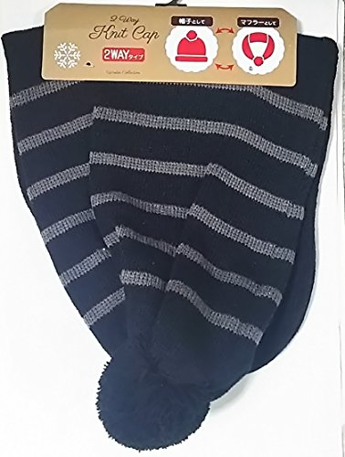 -. Title : 2WAYタイプ 帽子として マフラーとして ボーダー ニットキャップ 帽子 ポンポン付き