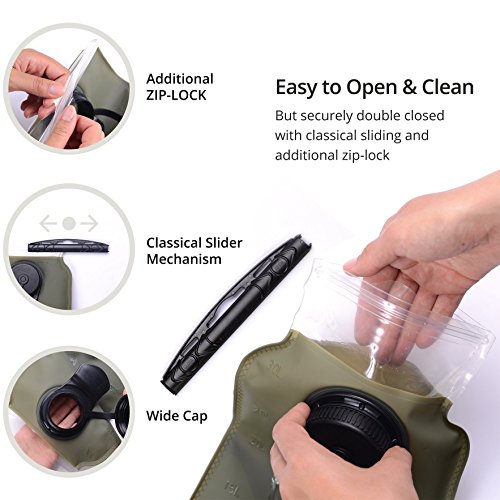 -. Title : RIQIK Military Hydration Bladder with Clips to Hold Drinking Tube - Premium Quality LeakProof Water Storage Tank - Replacement Reservoir for Backpacks- 3 L Capacity - For Biking, Hiking, Traveling