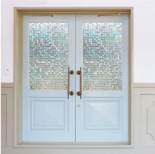 3D Small Block Privacy Window Films No Glue Static Decorative for Glass Heat Control& Anti Uv window Sticker for Home Bedroom Bathroom Kitchen Office 17.7x78.7 inch (45x200cm) 1 Roll