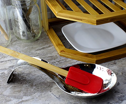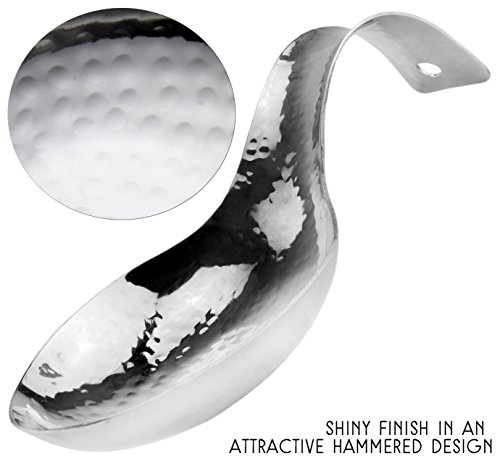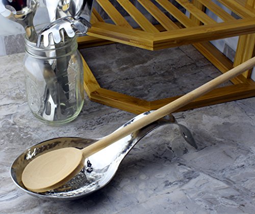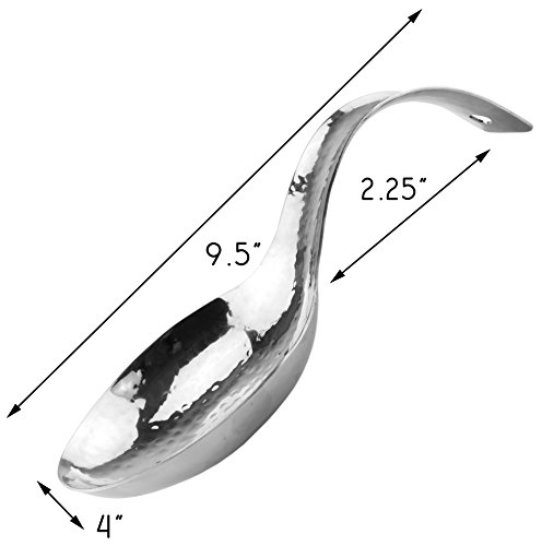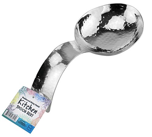 Studio : Darware Publisher : Darware Product Description Hammered Stainless Steel Spoon Rest Perfect for stovetop, dinner table, or buffet line, this spoon rest provides elegance while protecting your surfaces from drips, spills and heat. And no worries about breakage as you would have with a ceramic or porcelain spoon rest. This also makes a great bridal shower gift or mother's day gift or present for the family chef. Features: Material: stainless steel metal Surface: mirror-polished hammered Size: 9.5 inches long, 4 inches wide, 2.25 inches tall at arch of handle, spoon "bowl" 1 inch tall Weight: 7.4 ounces Handle has slot for hanging on a hook when not in use Made in India Dishwasher safe 0 |
