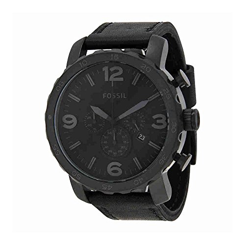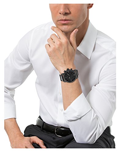 Add some military-inspired style to your wrist with our matte black stainless steel watch. A casual black leather strap and gray indexes add instant polish to any look. This Nate watch also features a chronograph movement.