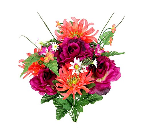 Admired By Nature 14 Stems Artificial Rose, Mum Flower with Greenery Foliage Mixed Bush for Home, Wedding, Restaurant & Office Decoration Arrangement, Lilac/Melon Mix, 2 Pieces