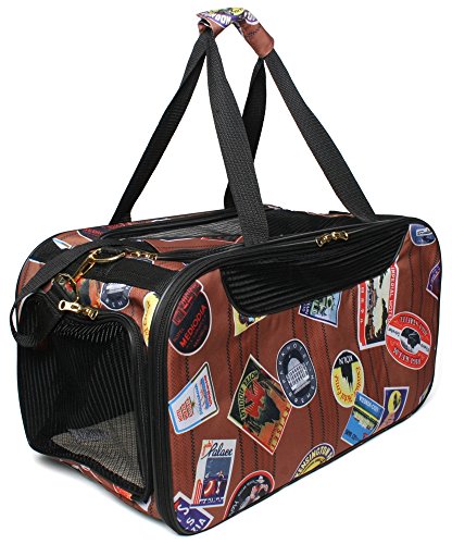 -. Binding : Misc. -. Brand : Traveler Weekender: MEDIUM -. ClothingSize : One Size -. Color : Traveler Patter -. Department : unisex-adult -. EAN : 0816587011304 -. Feature : Machine washable organic cotton quilted inside pad / Roomy front zippered pocket and gadget pocket, 3 points of entry / Mesh Convertible top, folds flat for storage, airline approved / 18" L x 10" H x 10" W, measure your pet before ordering do not go by just weight / Check with your airlines as under the seat size requirements vary -. Label : Bark n Bag -. Manufacturer : Bark n Bag -. Model : B1015 -. MPN : B1015 -. PackageQuantity : 1 -. PartNumber : B1015 -. ProductGroup : Pet Products -. ProductTypeName : PET_SUPPLIES -. Publisher : Bark n Bag -. Size : One Size -. Studio : Bark n Bag -. Title : Bark N Bag Weekender Travelor Pet Dog Carrier Airline Approved 18" L x 10" H x 10" W -. UPC : 816587011304