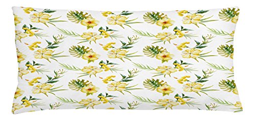 Watercolor Throw Pillow Cushion Cover by Ambesonne, Hibiscus Flora Pattern Hawaii Plants with L...