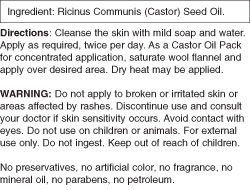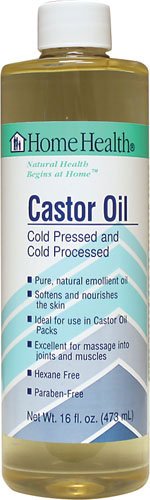 Castor Oil by Home Health 16 oz Liquid Castor Oil 16 oz Liquid Ingredients Castor Oil. Directions Cleanse the skin with a mild soap and water and apply Castor Oil. Massage in sparingly. As a Castor Oil pack for concentrated application saturate wool flannel and apply over desired area. Dry heat may be applied. Warnings Keep out of reach of children. As with all dietary supplements consult your healthcare professional before use. See product label for more information. Should skin sensitivity occur discontinue use. Store in a cool place. Keep out of the reach of children.