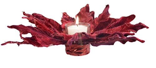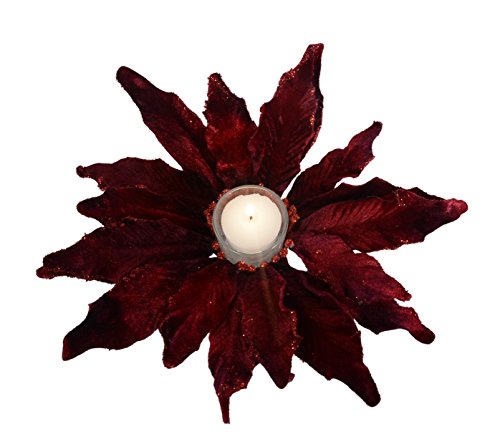 - Burgundy velevet look artificial poinsettia bloom holds a tea light or votive candle in the 2.5 inch high x 1.25 inch diameter