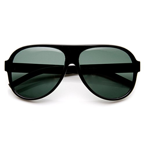 Classic plastic aviator sunglasses with a tear-drop frame design that features a green tinted glass lens. A retro classic frame that offers a timeless look and is a perfect easy-to-wear "go to" pair for everyday activities. Made with a plastic based frame, metal hinges, and glass UV400 protected lenses.