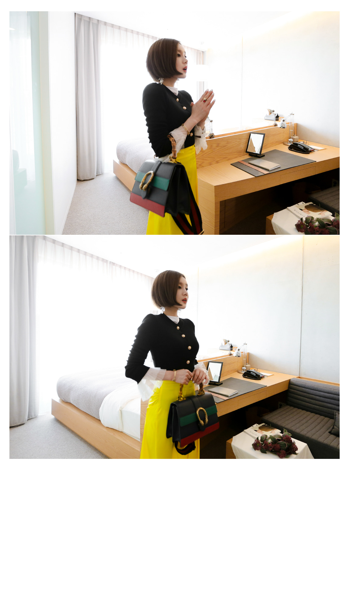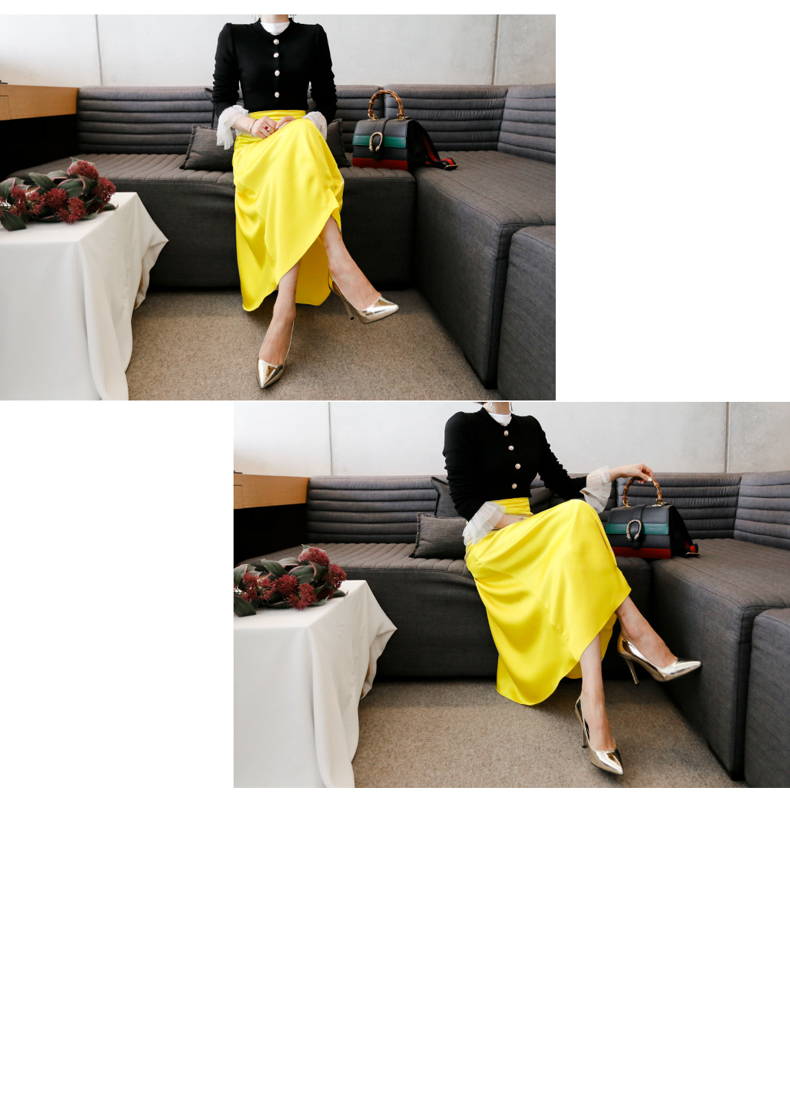 フロント中央の真珠のボタンの細部までクオリティをあげ
