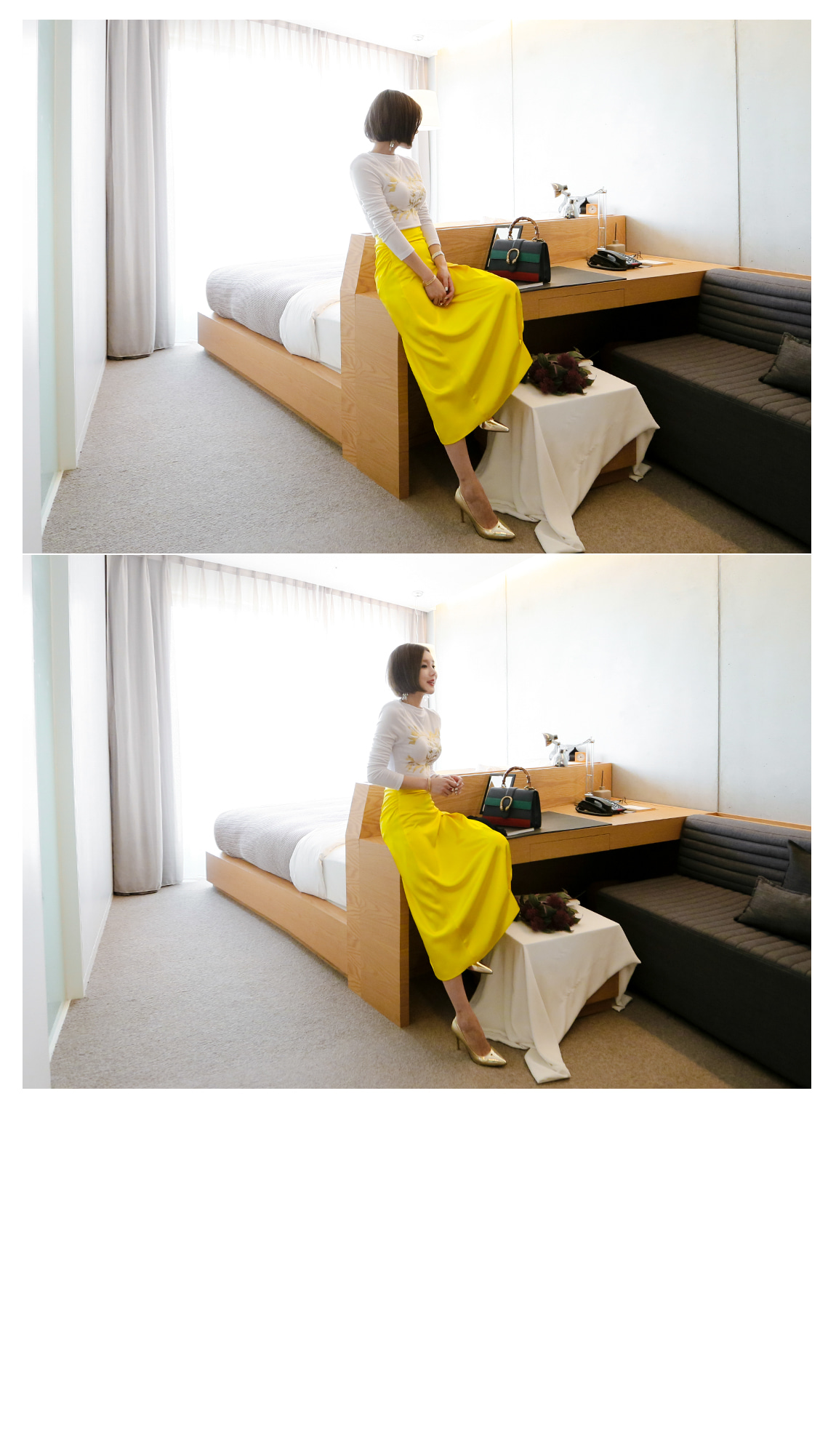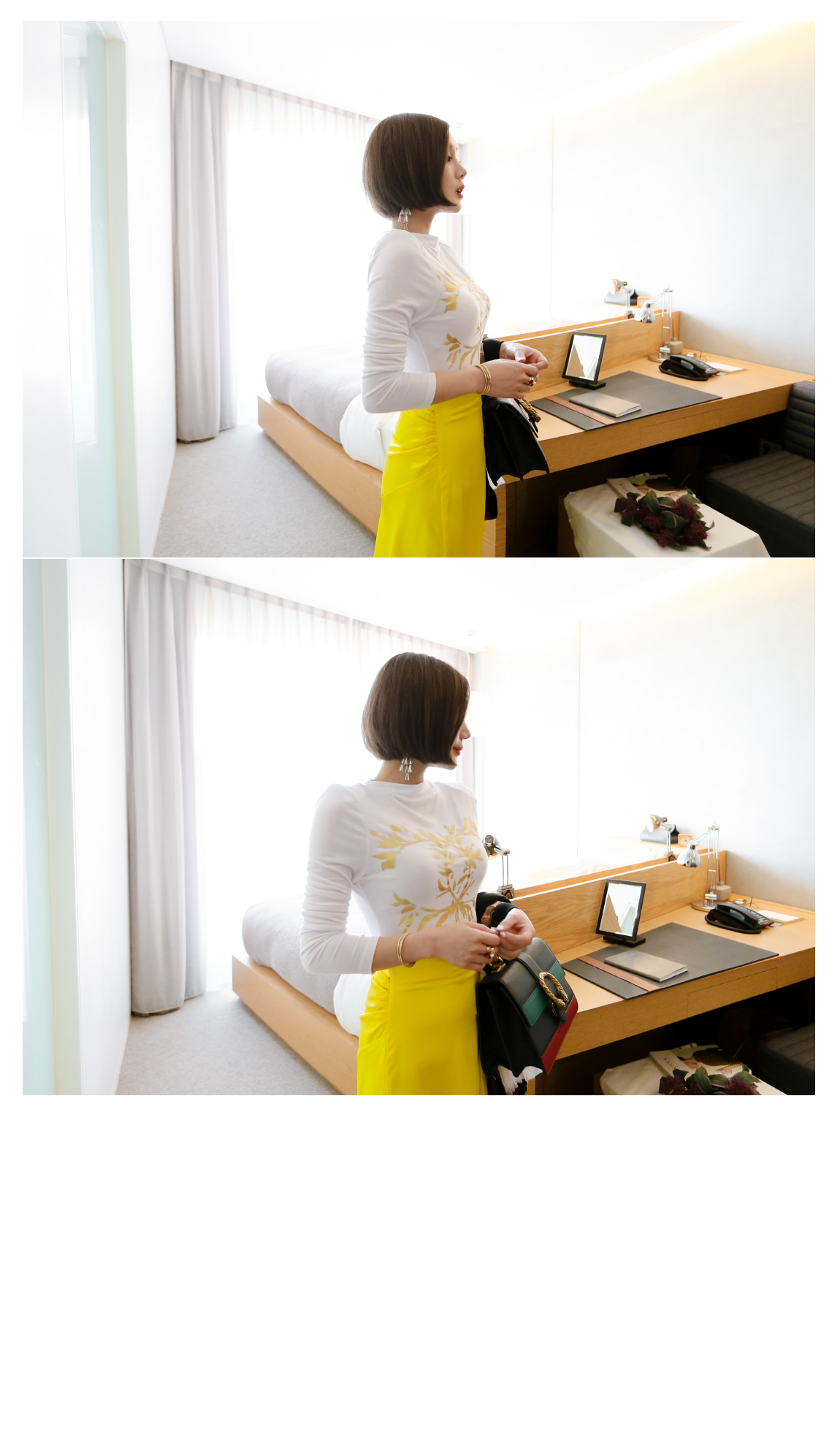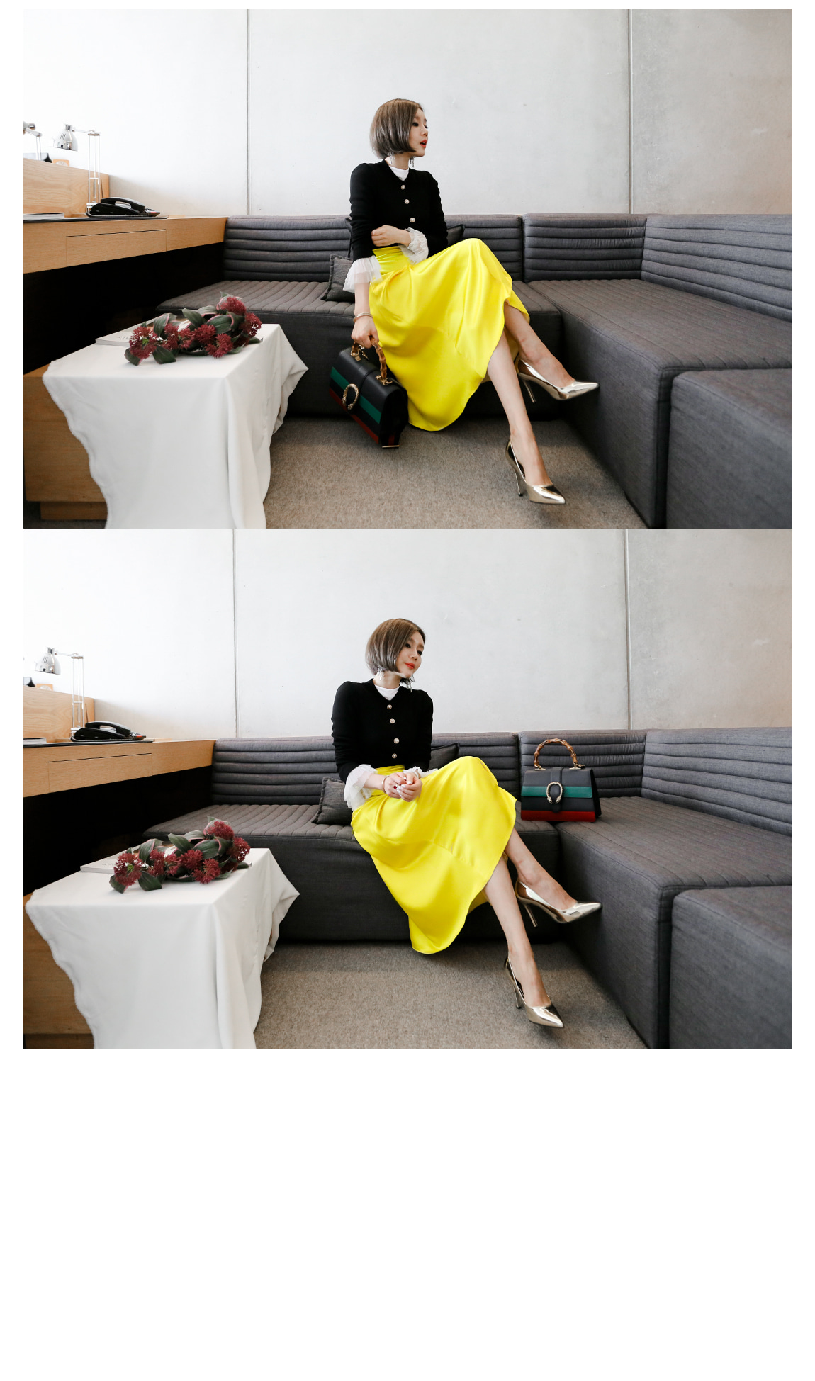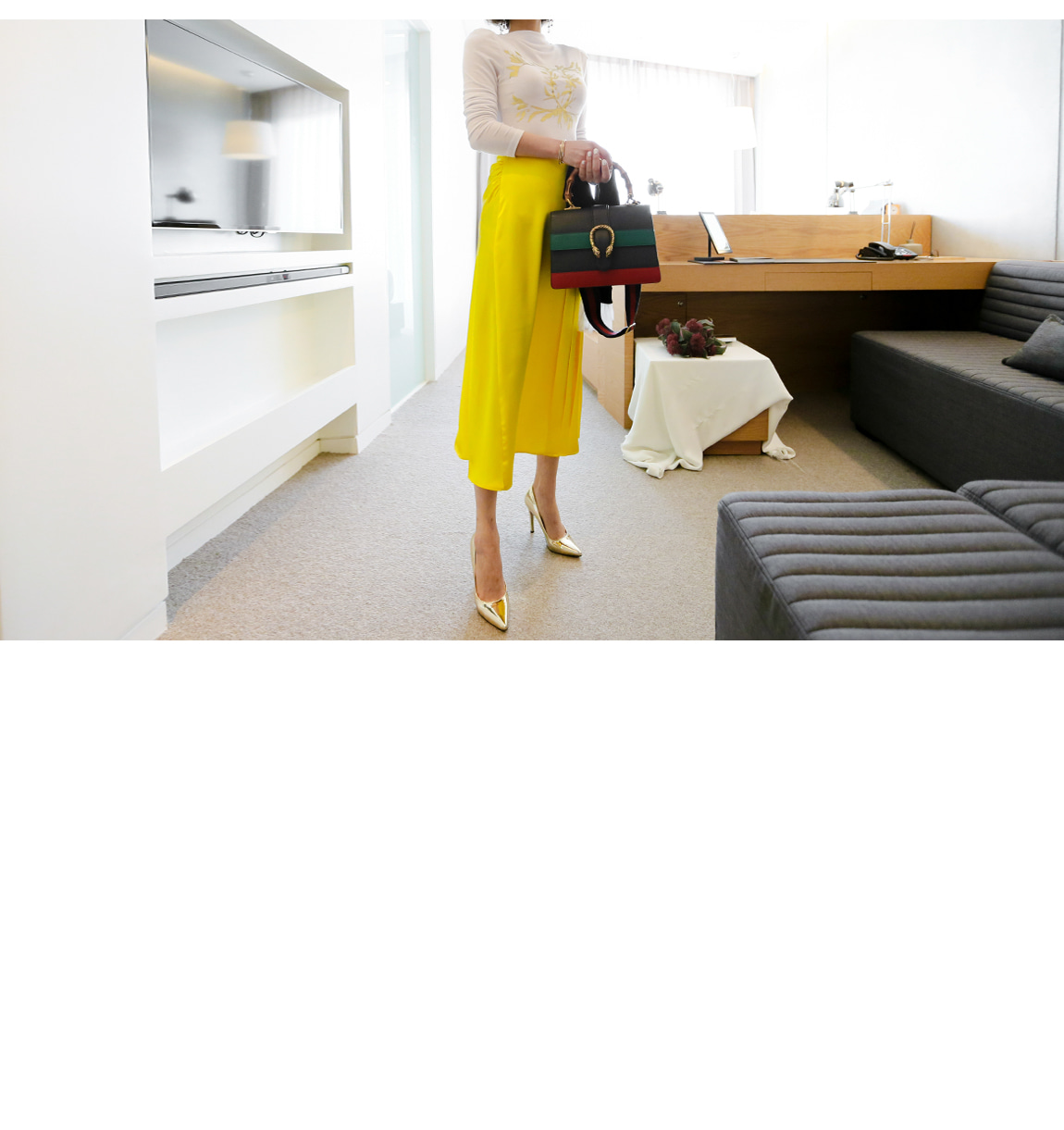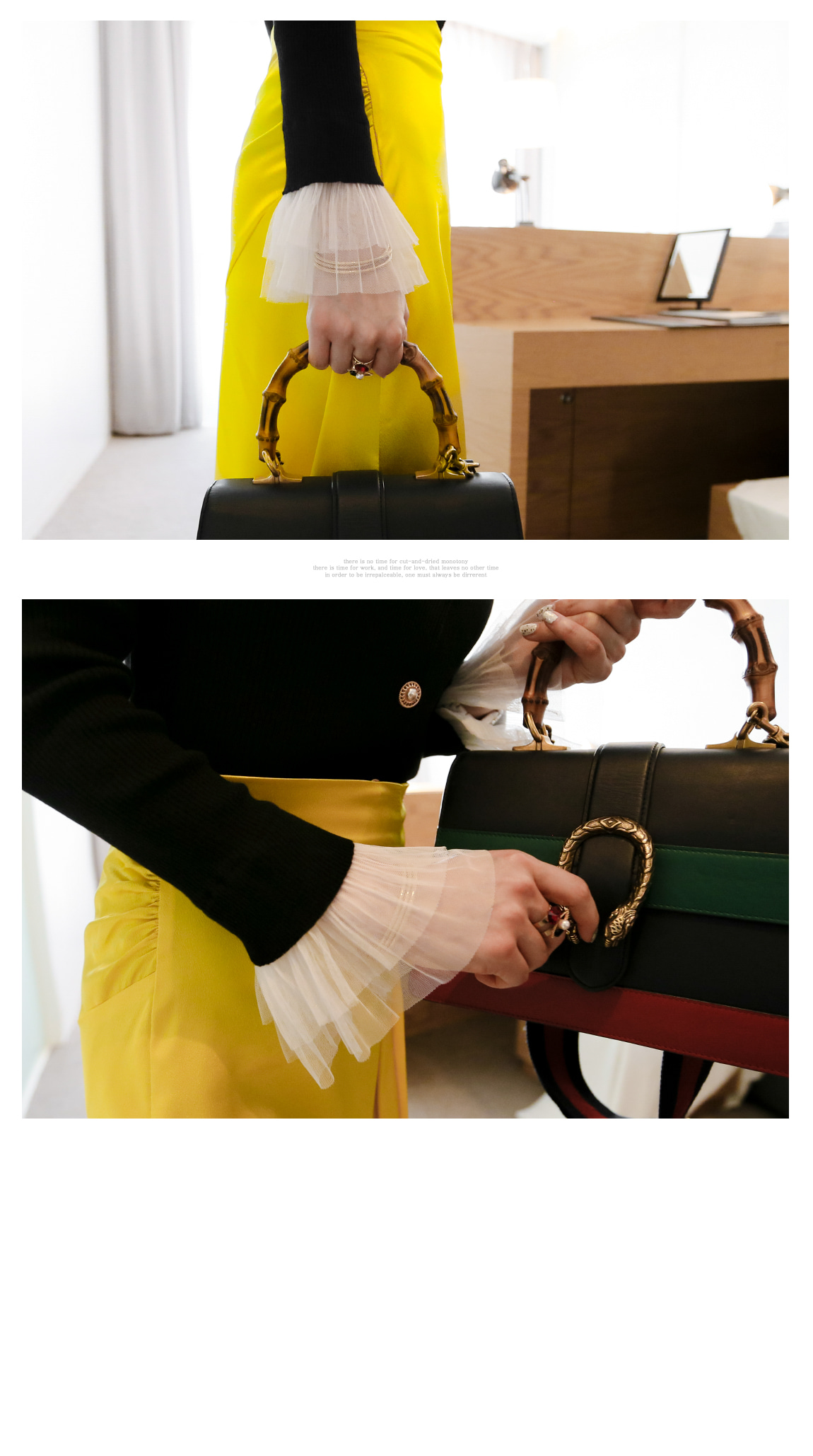 レース袖でフェミニンなポイントを与えたのです