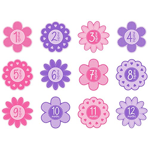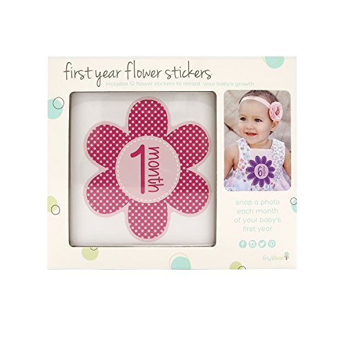 -. Feature : Our baby's first year flower stickers are a fun, unique way to capture each month of your growing baby's first year / Includes 12 monthly flower stickers; Easy to peel and stick on clothing / Record your baby's age from 1-12 months / Snap a photo with your baby and sticker and share with friends and family or on social networks like Instagram, Facebook, and Twitter / Makes a great baby shower gift