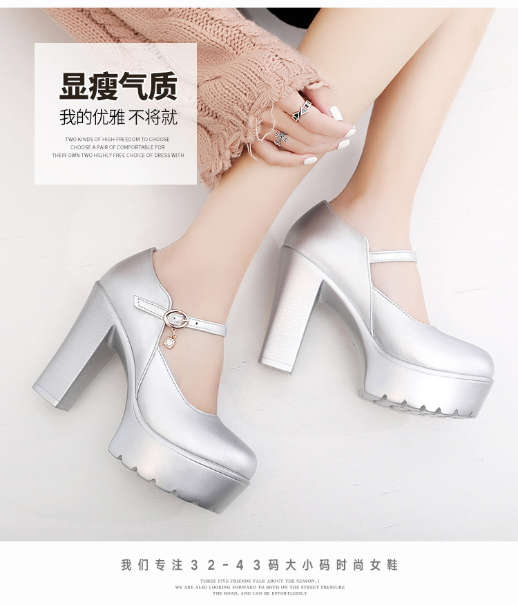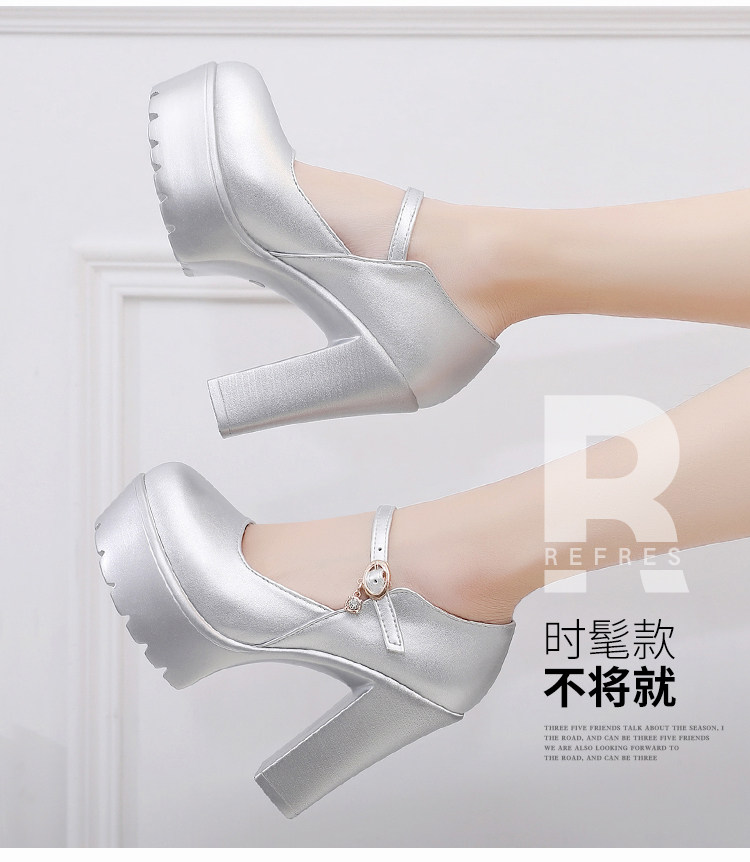 高跟厚底防水台女鞋T台模特单鞋粗跟白色婚纱鞋婚鞋真皮走秀鞋女
