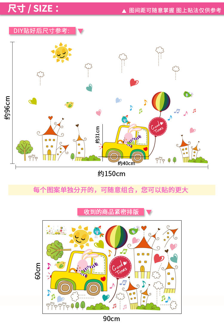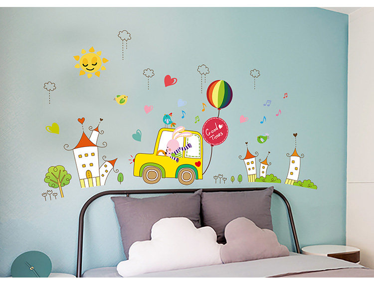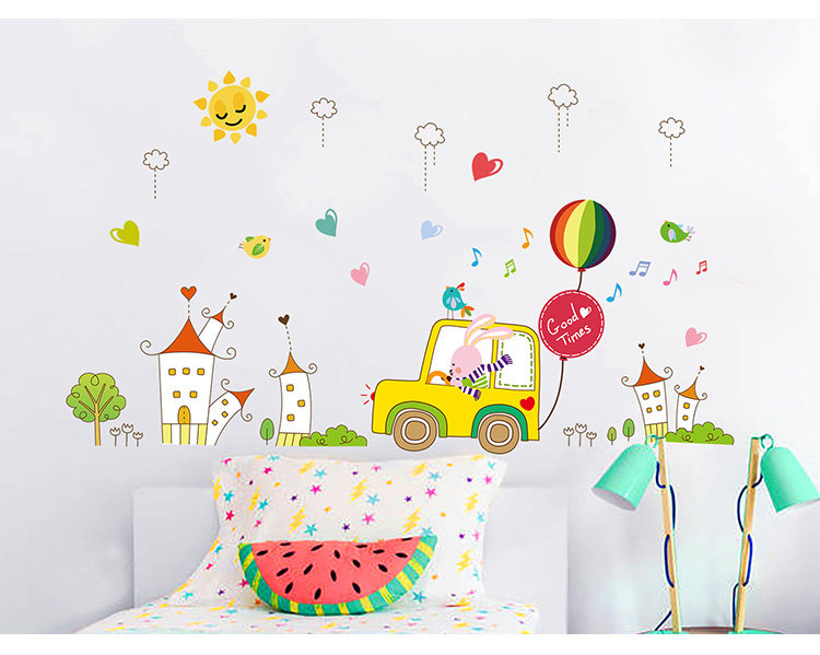 儿童房自粘墙纸贴画男孩卧室床头背景墙装饰卡通动物小汽车墙贴纸