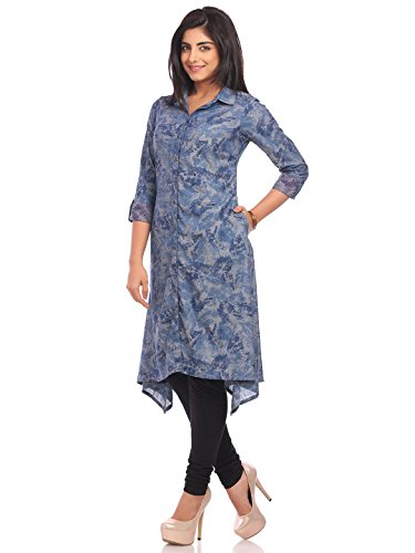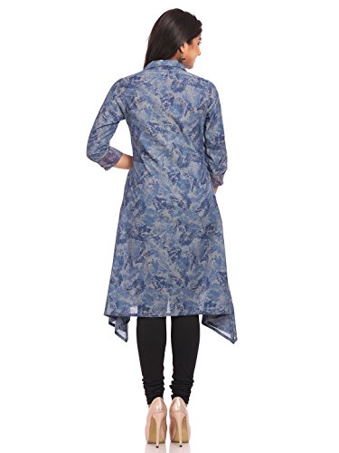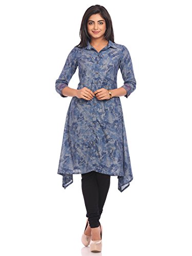 -. Title : BIBA Women's Denim Asymmetric Collar Neck Printed Tunic