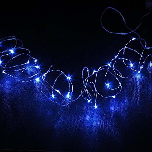 ESUMIC Ultra Thin 30 Micro LEDs Bulb Fairy String Light With Battery Compartment,Flashing Mode (Blue)