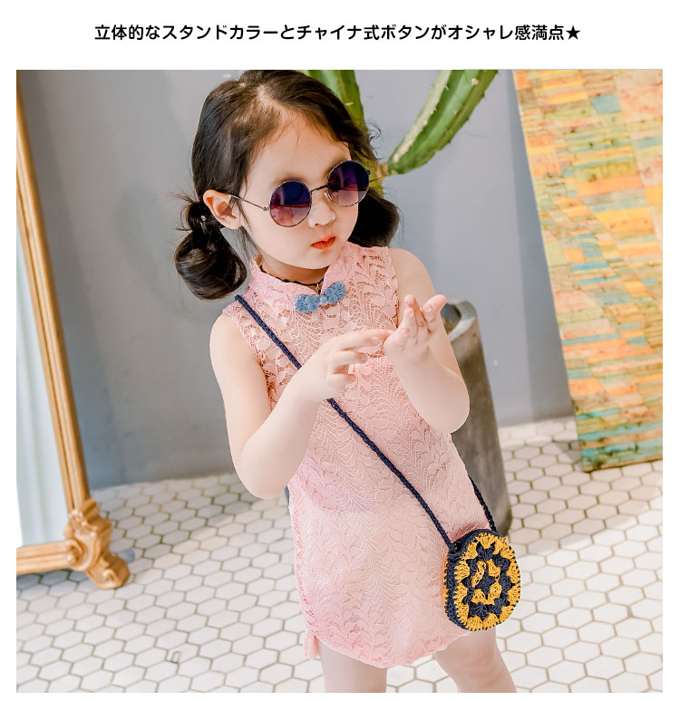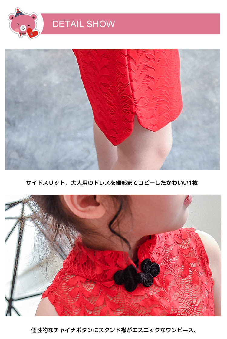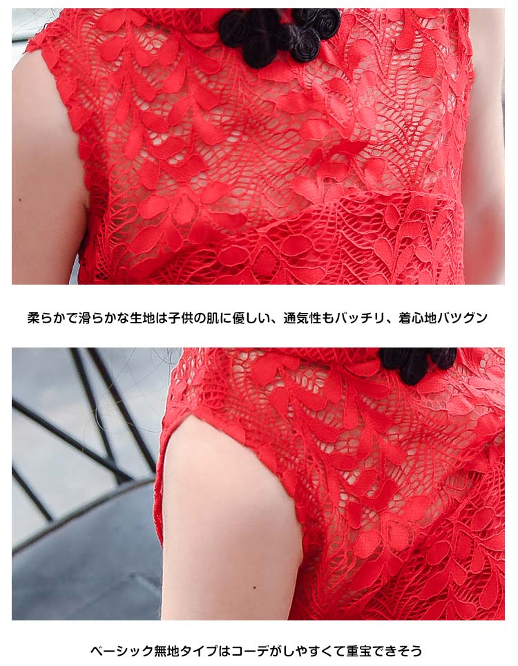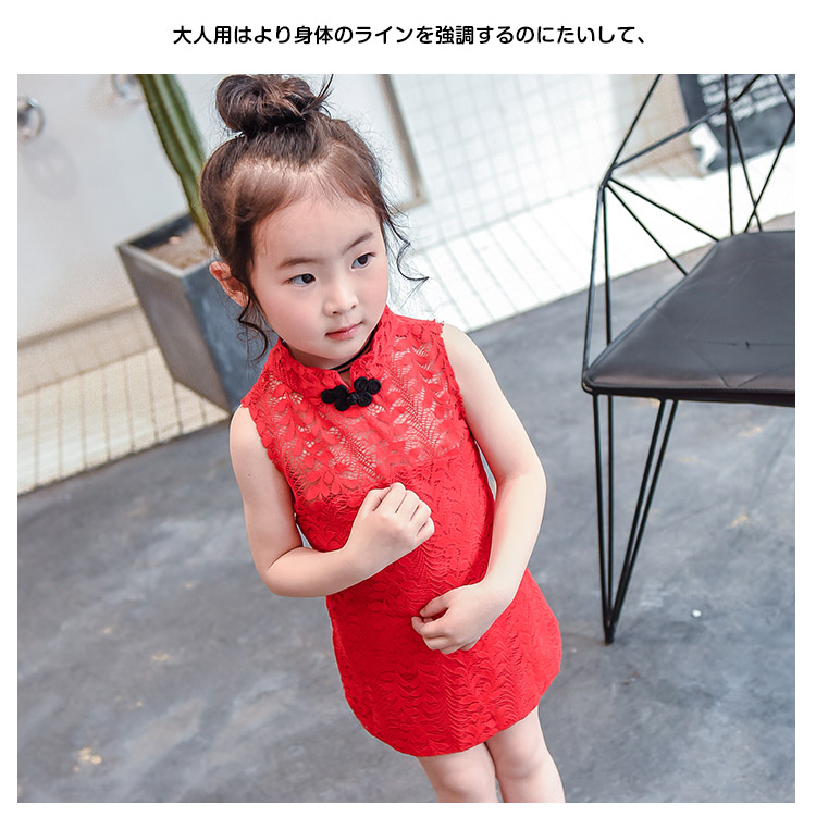 | 立体的なスタンドカラーとチャイナ式ボタンがオシャレ感満点★大人用はより身体のラインを強調するのにたいして、こども用のチャイナドレスはよりゆったりとしたシルエットが人気★元気に動きまわるお子様にも安心してきていただける★ | |