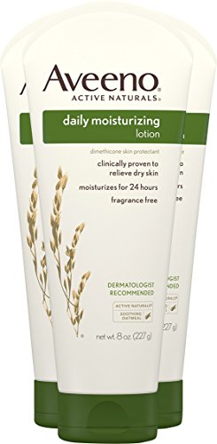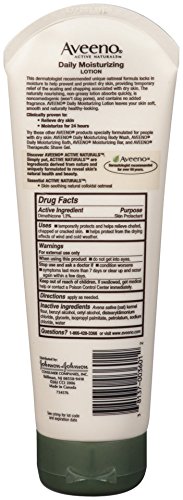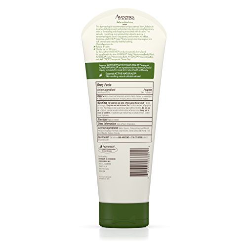 Keep your skin looking healthy, soft, and beautiful every day with Aveeno Daily Moisturizing Lotion. This dermatologist-recommended formula locks in moisture to help protect dry skin, providing temporary relief of the scaling and chapping associated with dry skin. Clinically proven to reveal healthier-looking skin in just one day, with significant improvement in two weeks, this body lotion is ideal for daily use. The nourishing formula contains Active Naturals Colloidal Oatmeal to moisturize for 24 hours, leaving your skin feeling soft and smooth. It's also fragrance-free, non-greasy, and non-comedogenic. Aveeno Daily Moisturizing Lotion comes in a 71-millilitre tube, 227-millilitre tube, 354-millilitre bottle, or 532-millilitre bottle.Feature
