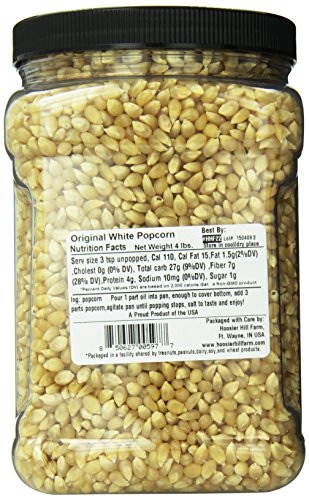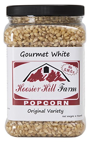 Huge 4 Pound Jar!! High in fiber and antioxidants, Hoosier Hill Original White popcorn.This is fresh from the farm gourmet popping corn. Popcorn Lovers Size! Fresh non-GMO Indiana grown Popcorn.
