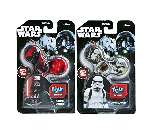 Fijix Spinners are the perfect combination of a focus device and a fun fidget toy! Very easy to spin using two hands or take it up a level with the flick of your wrist to balance and keep it spinning in one hand. The high speed and long spin time will not only keep you focused but allow for tons of tricks. Each spin is a chance to beat your own spin time or challenge a friend! Highly collectible, each side of the spinner has different graphics of your favorite characters― Darth Vader and Stormtrooper. Put it in your pocket and make anytime, spin time!Feature