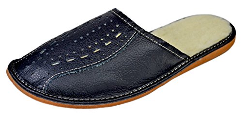 -. Feature : Full Grain Cowhide Leather Upper / Soft warm Faux Wool lining / Lightweight Indoor Slippers / Contrast Stitching / Flexible and durable European design Slippers