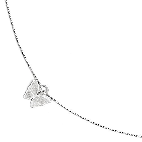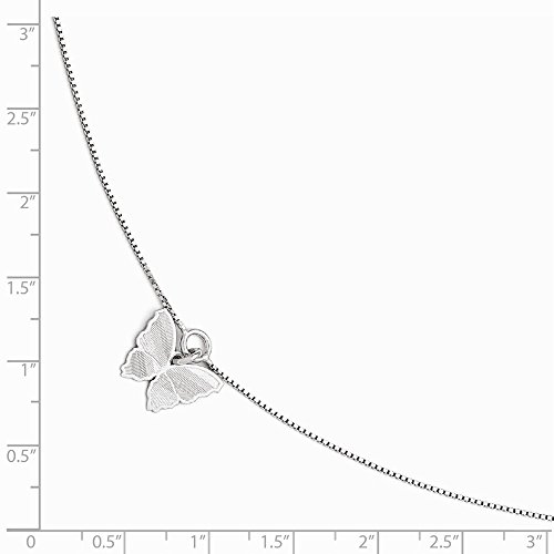 Solid Sterling Silver Polished & Textured Butterfly Anklet with 1in ext 9" - with Secure Lobster Lock Clasp (1mm)