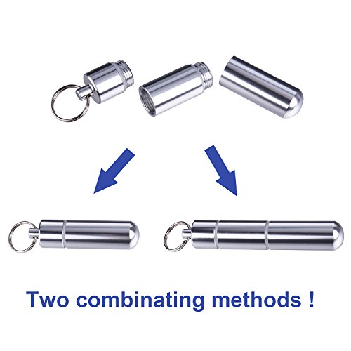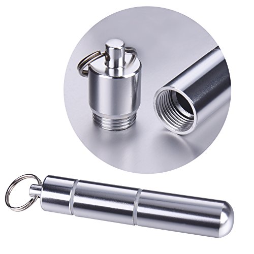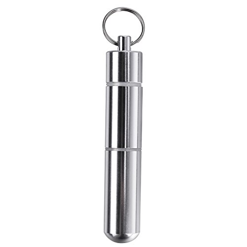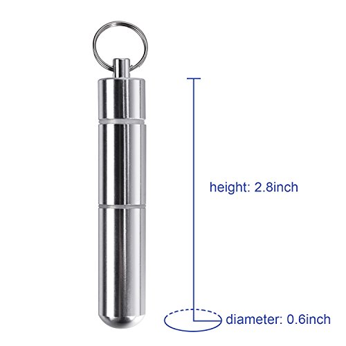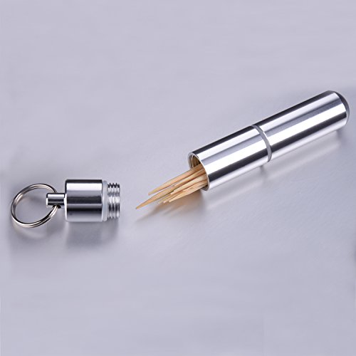 Shappy Pocket Toothpick Holder Waterproof Aluminium Alloy Toothpick Box Metal Pill Case with Key Ring, 2.8 x 0.6 Inch