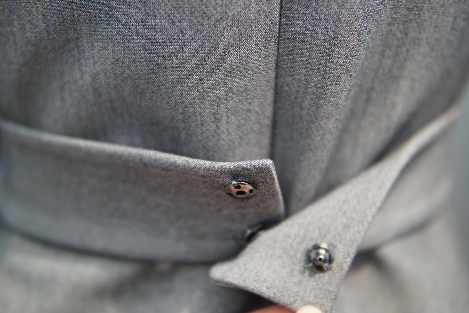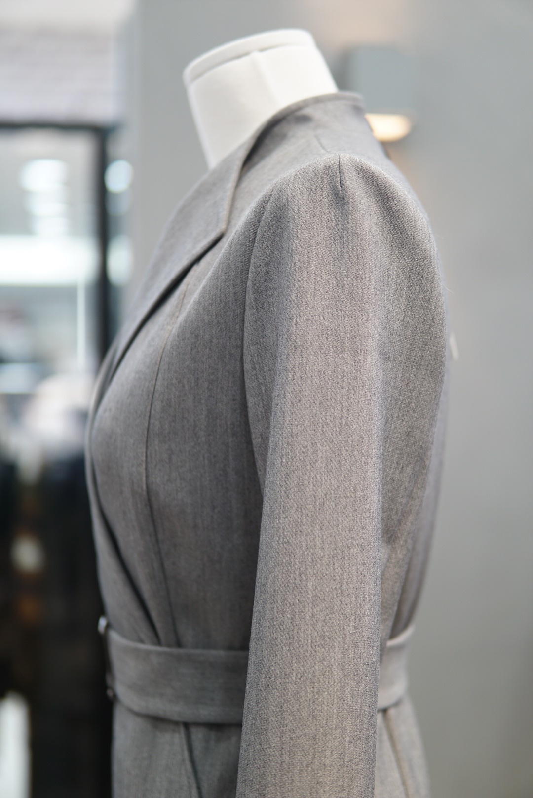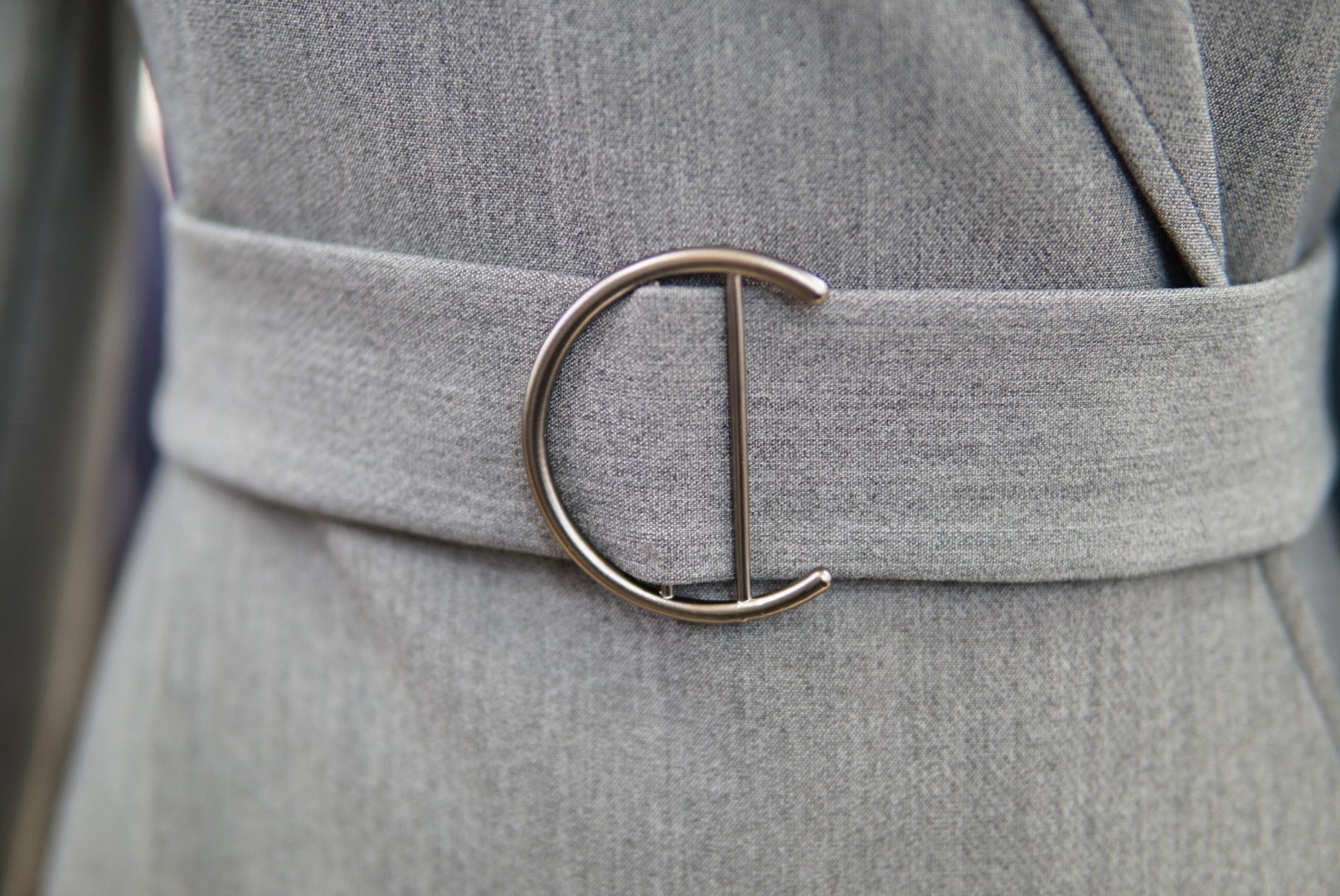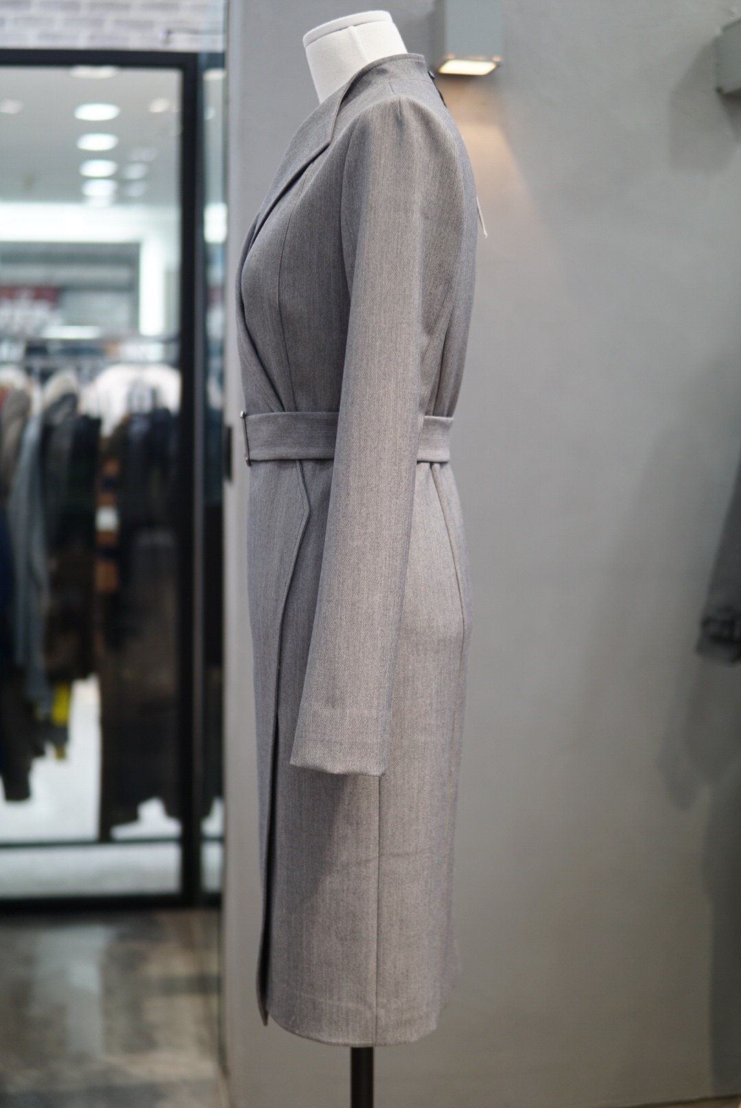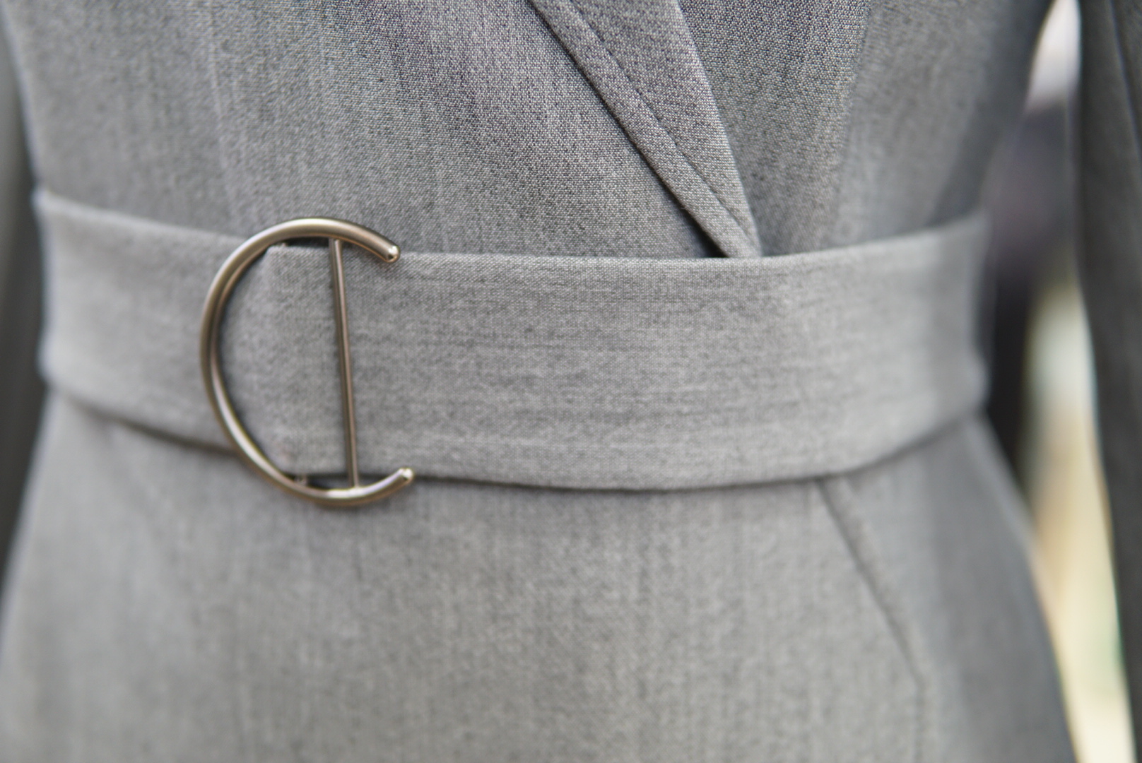 카라 넥라인에 버클 벨트로 포인트를 주면서