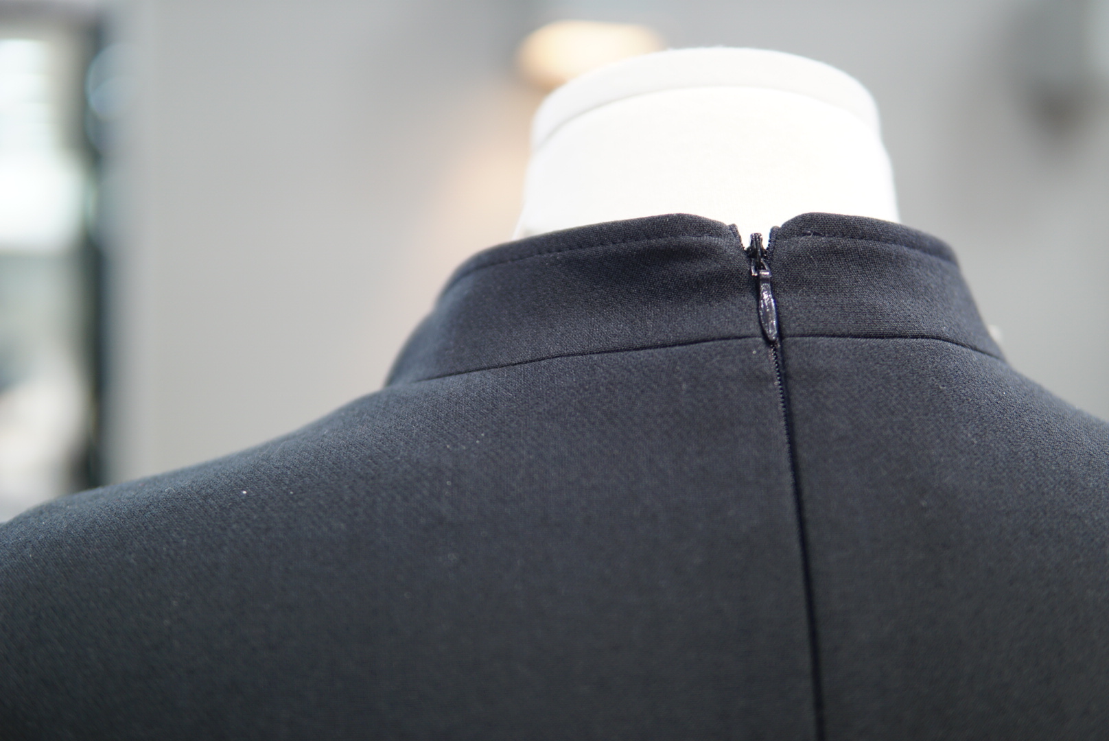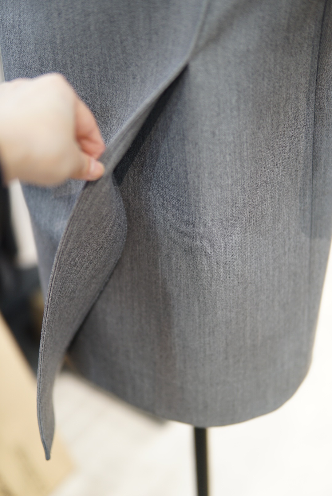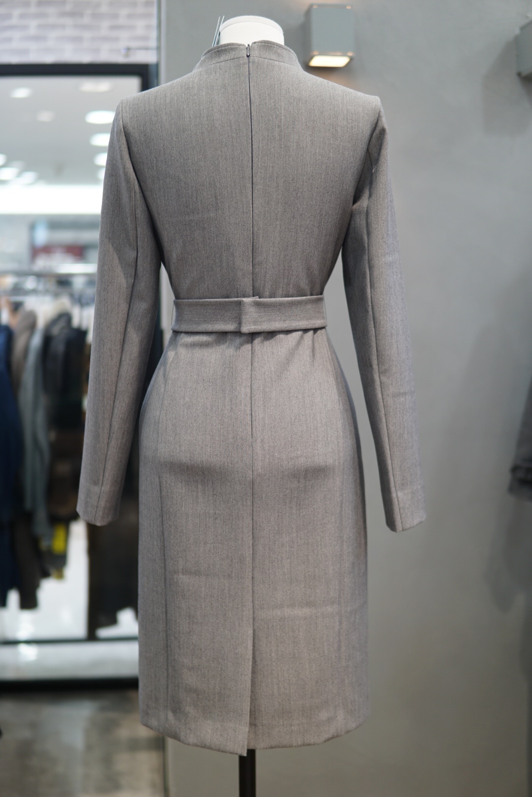 모던한 카라 디자인에 절개선으로 떨어지는