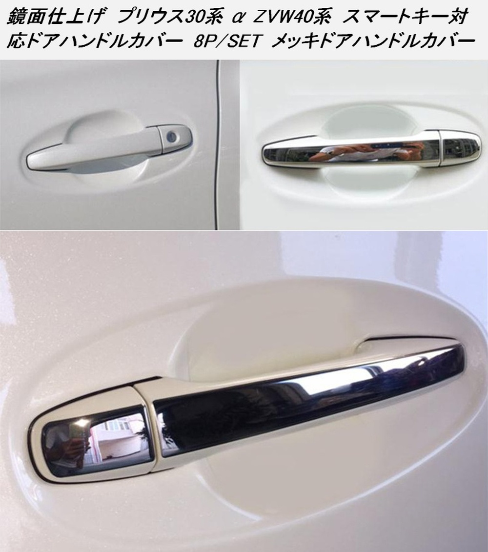 プリウス30系 α ZVW40系 メッキ ドア ハンドルカバー ドアカバー スマートキー対応 鏡面シルバー