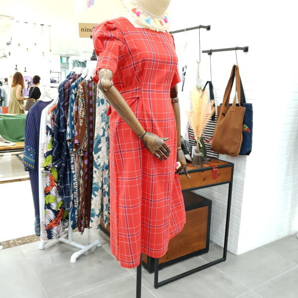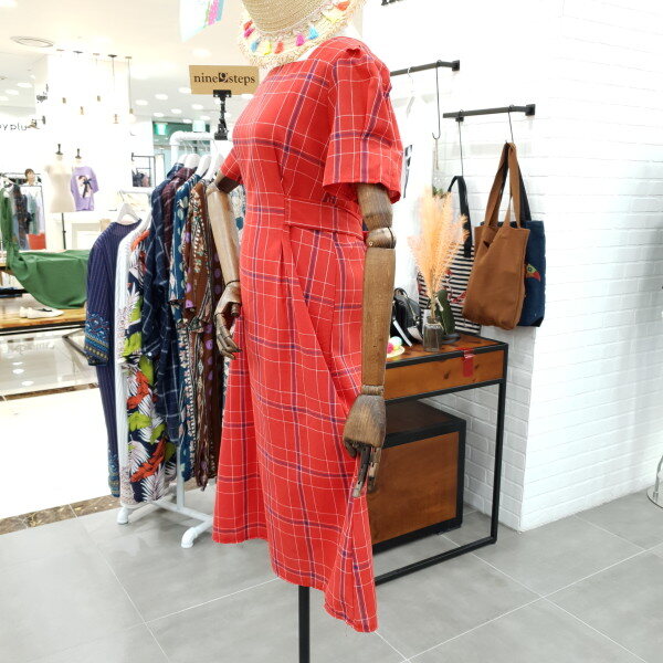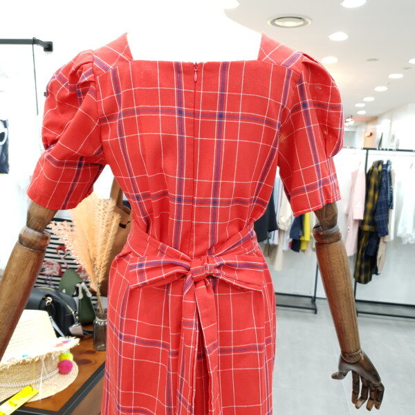 체크핀턱 끈 원피스예요.깔끔한 라인과 퍼프소매의 라인이 돋보이는 원피스예요.허리선의 끈으로 라인을 잡아 예쁘게 연출하실수 있고 허리선이 날씬해보이며 키도 커보이는 효과까지 있는 원피스예요