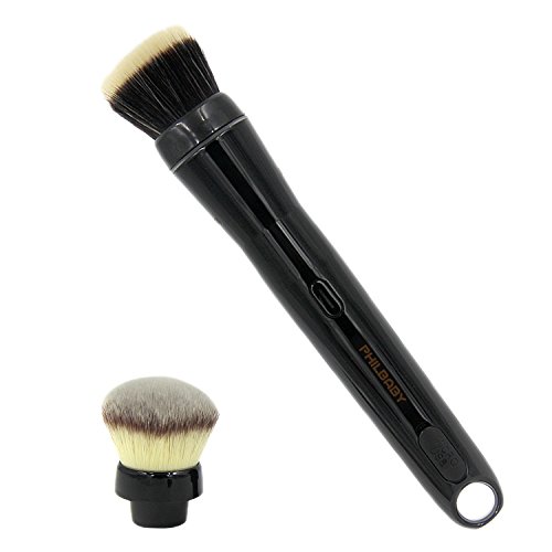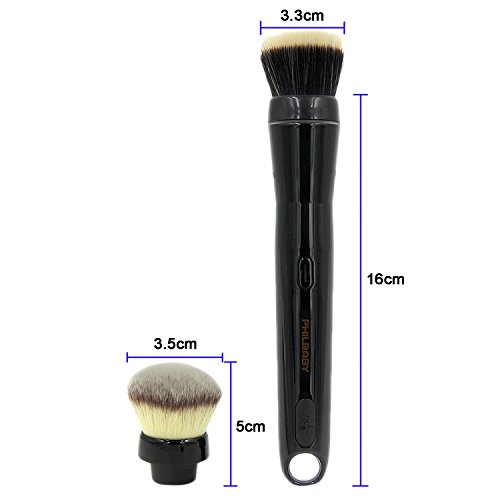 - Two detachable heads: comes with 2 removable brush heads, Including foundation brush and blush brush, don't use with with your favourite liquid, loose or pressed powder foundation easy to change and clean.