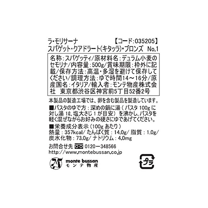 원재료:듀람 밀의《세모리나》(이탈리아,미국,캐나다,오스트레일리아 외에)