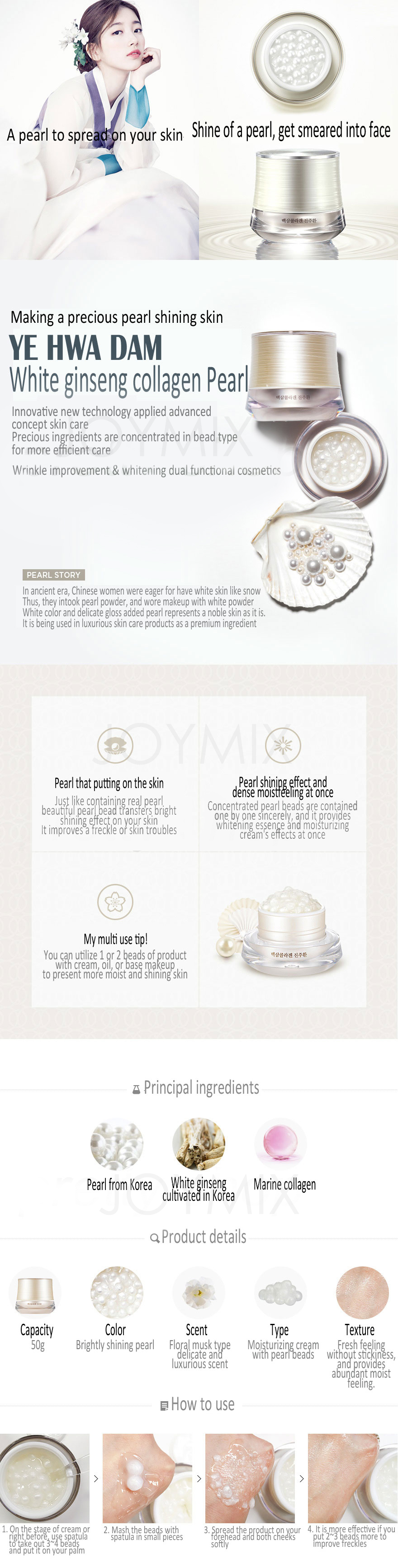 YEHWADAM WHITE GINSENG COLLAGEN PEARL CAPSULE CREAM is the latest best selling products in South Korea uses Natural active ingredients