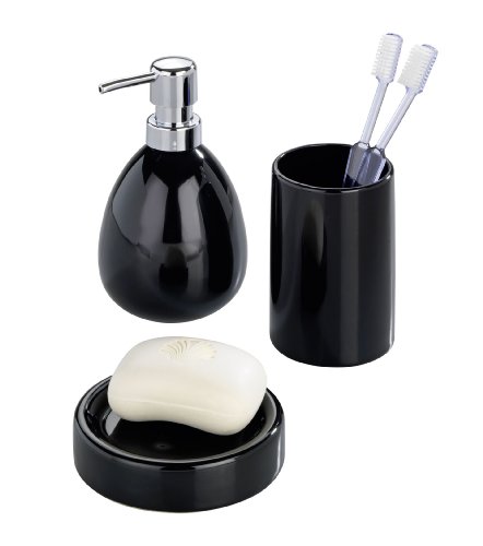 WENKO 19299100 Toothbrush tumbler Polaris Black, Ceramic, 3 x 4.4 x 3 inch, Black